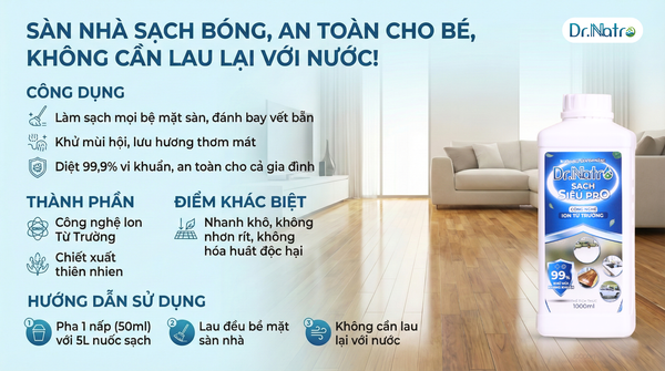 NƯỚC LAU SÀN ĐA NĂNG DR.NATRO – SÀN SẠCH BÓNG LOÁNG, CÔN TRÙNG “CHẠY TRỐN”